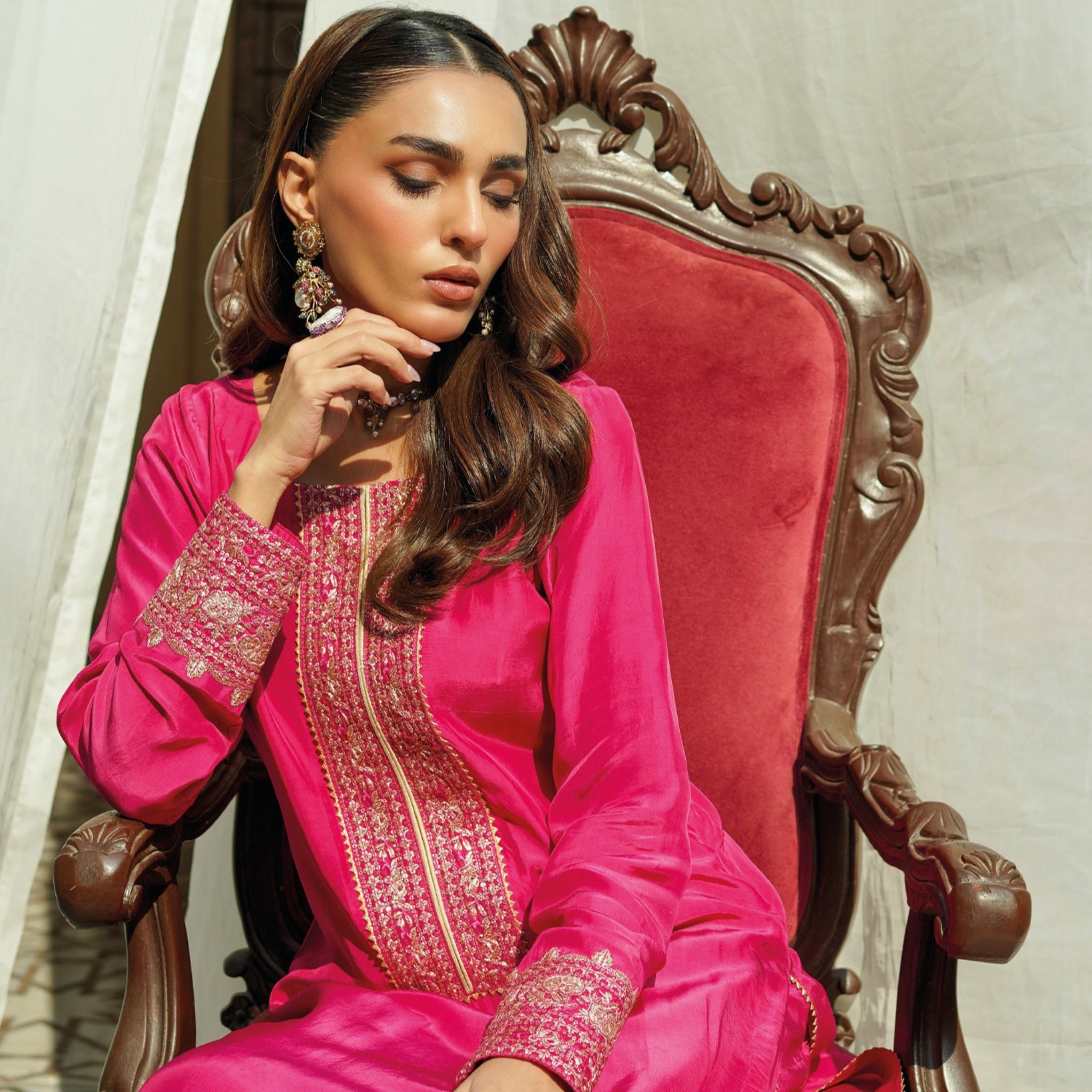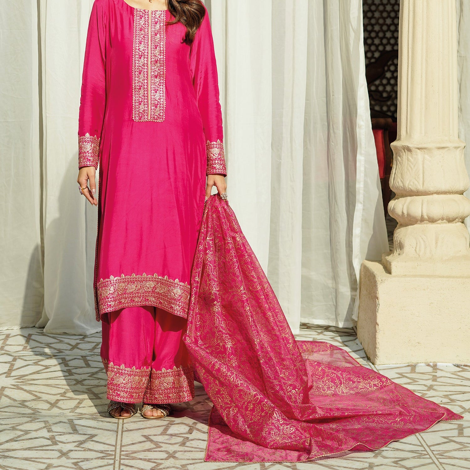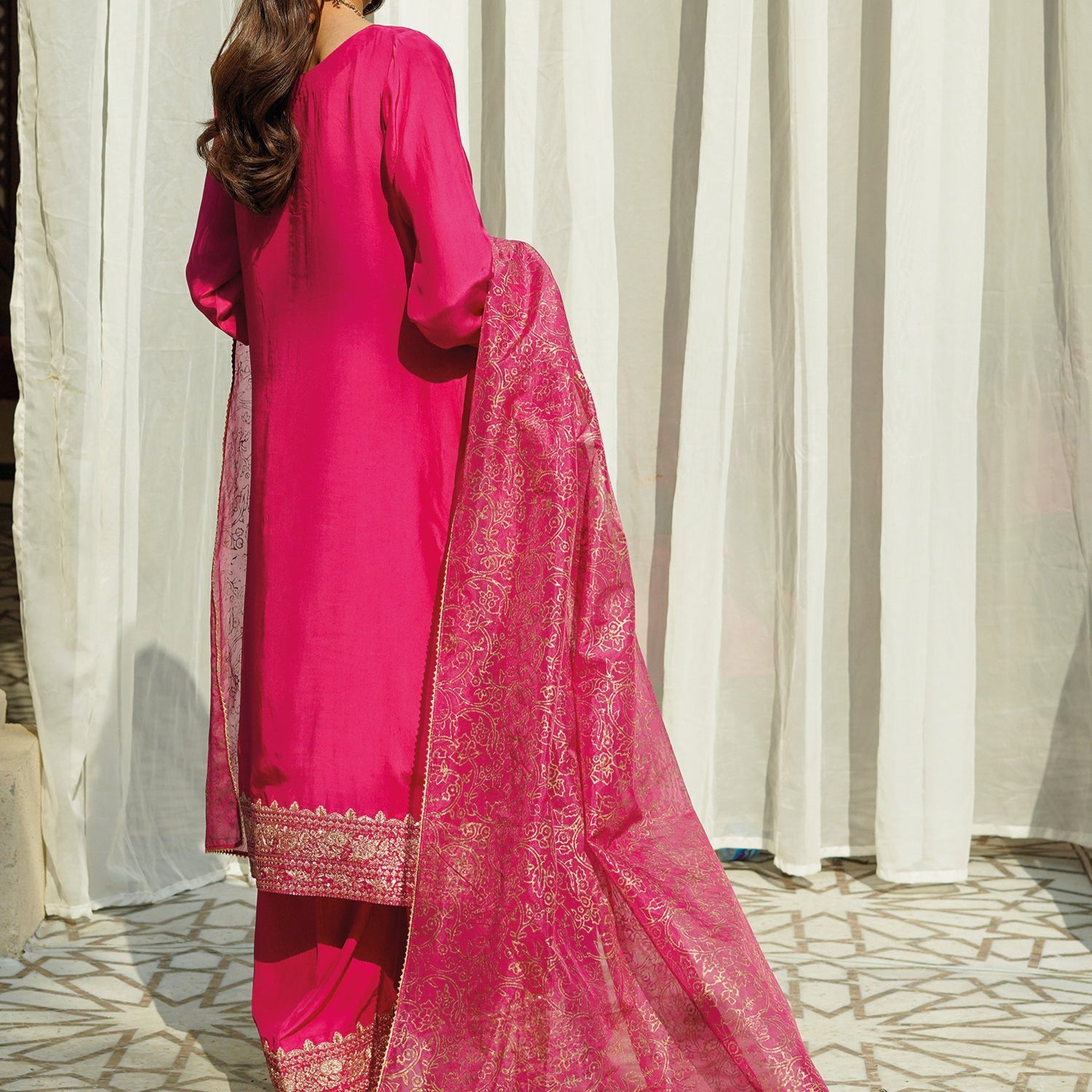 - Pair with hot pink and gold jhumke (tassel earrings)