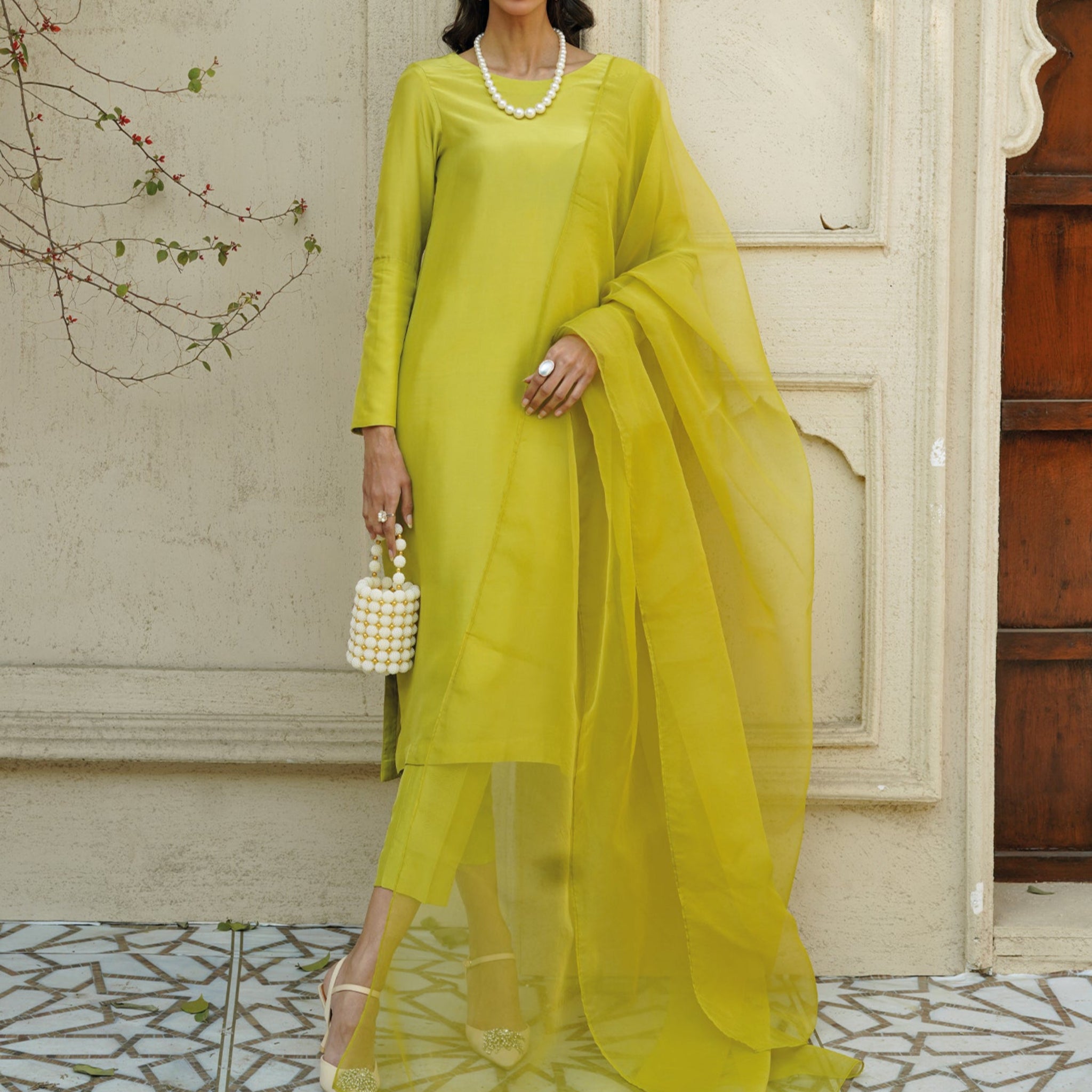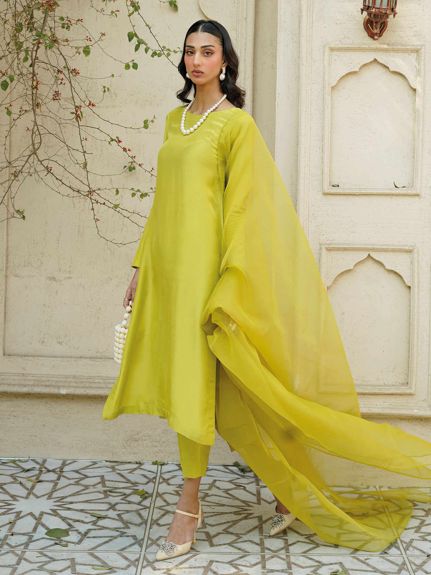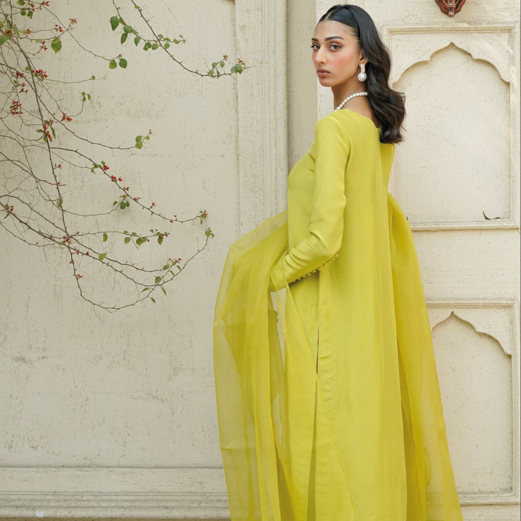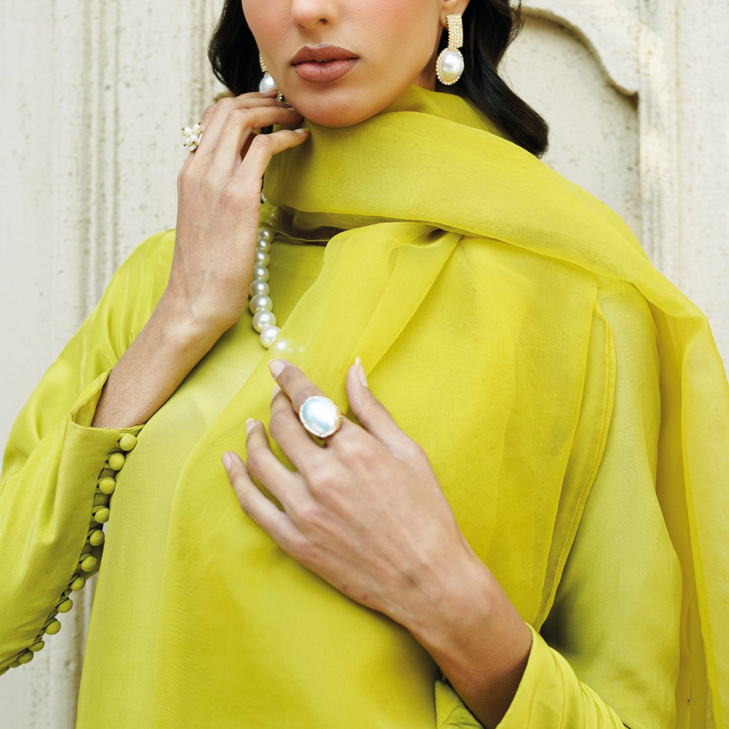 Mehr - Embroidered Readymade Three Piece Shalwar Kameez in Lime Green with Organza Dupatta