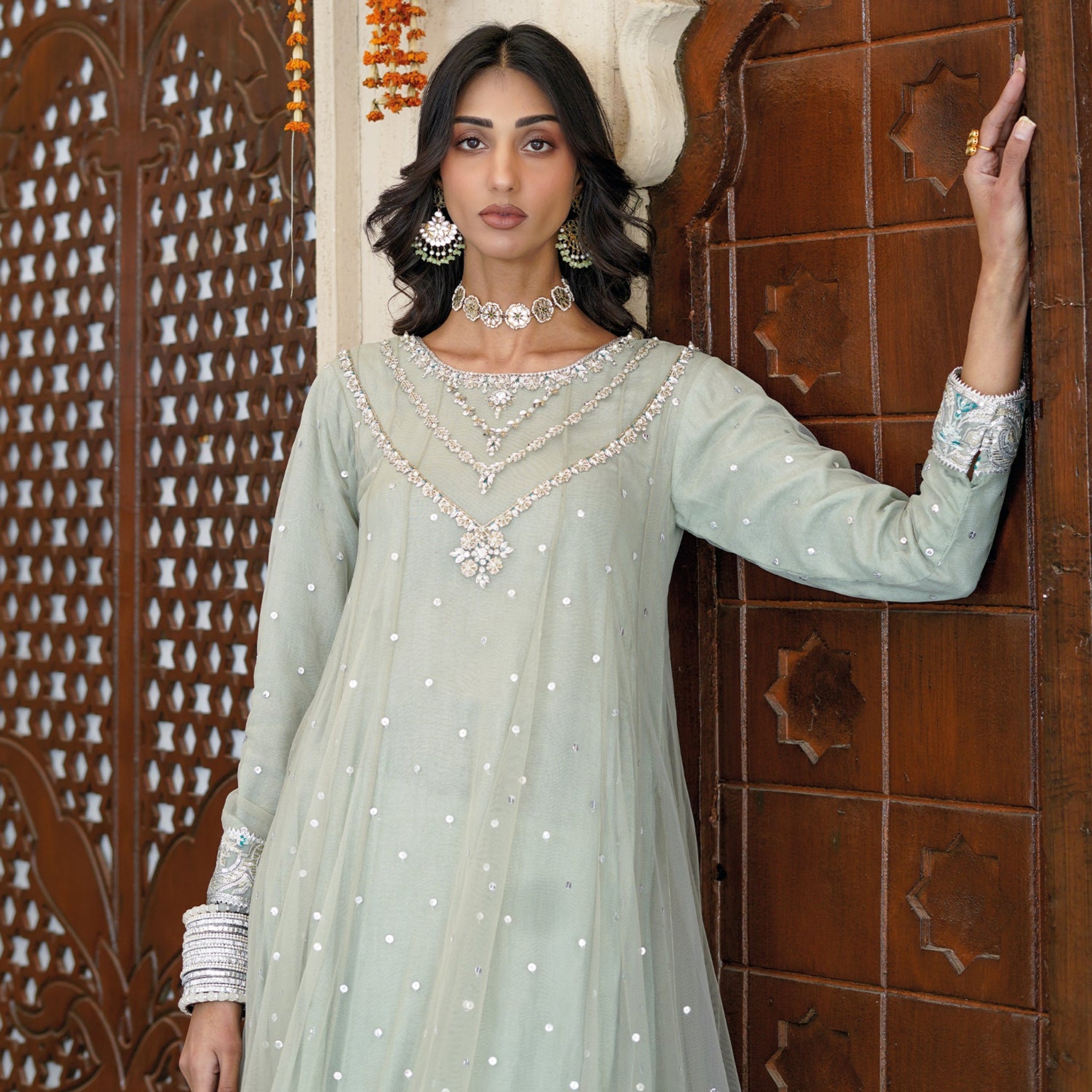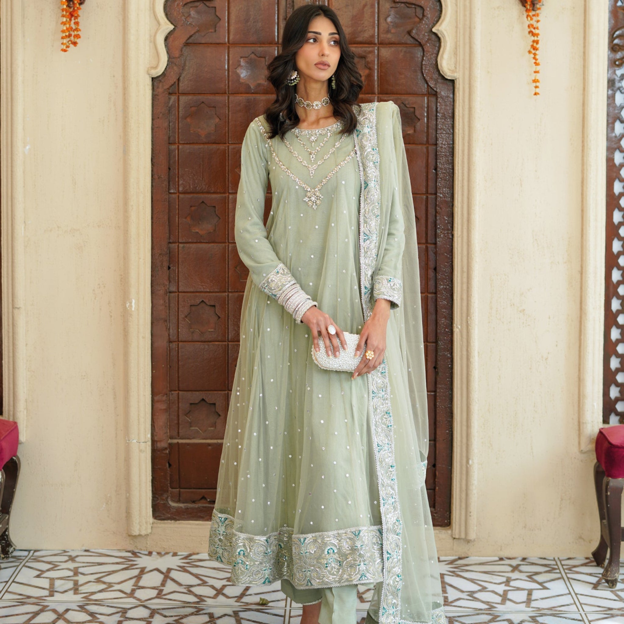 - Pishwas and dupatta made of net