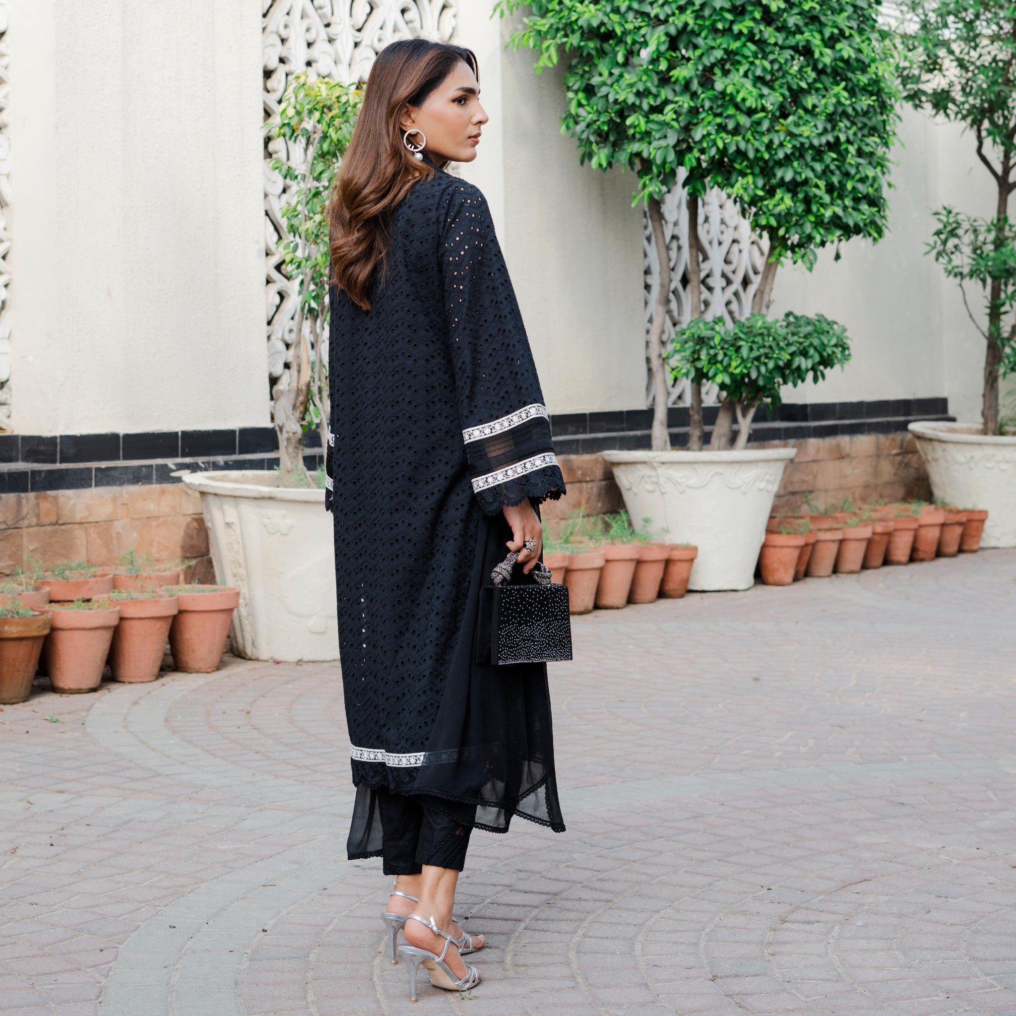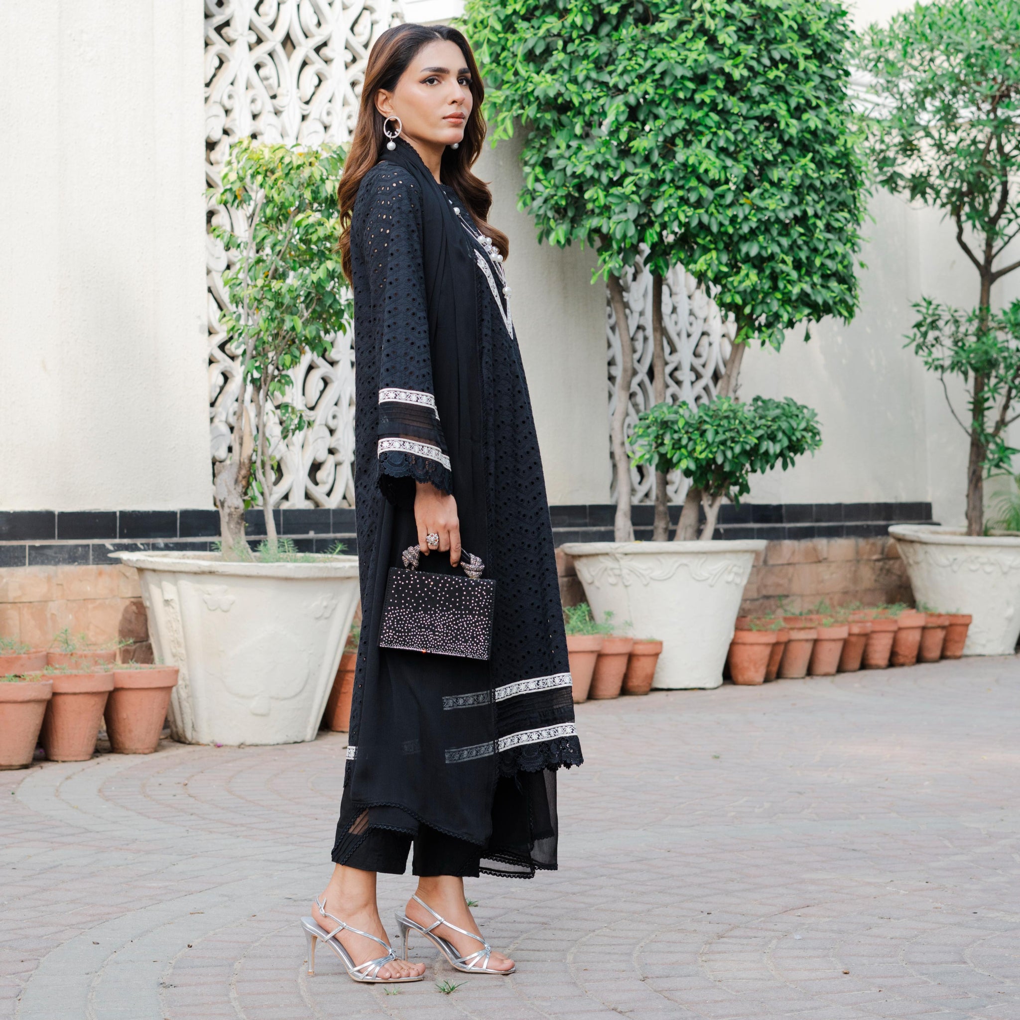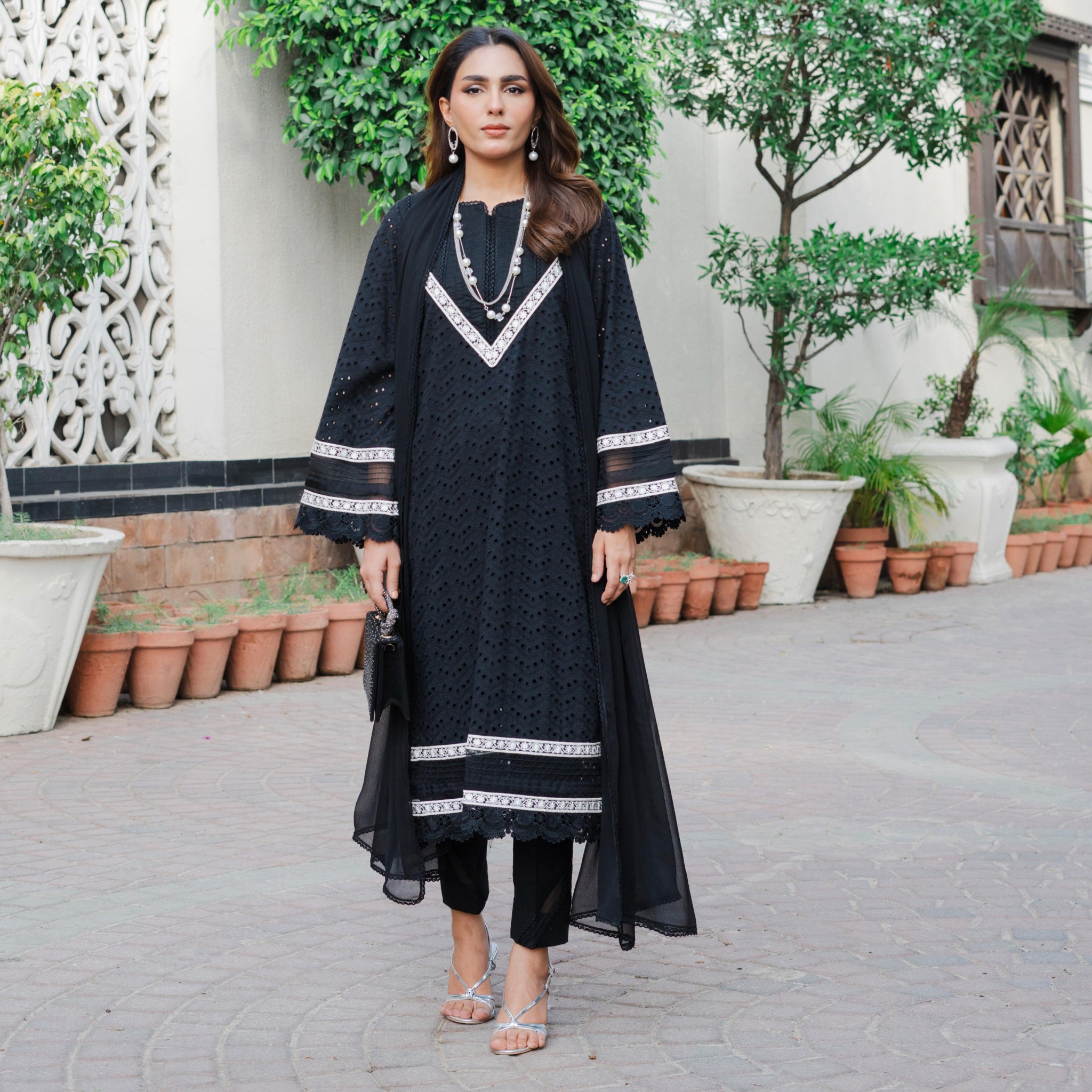 Siaahi - Readymade Chikankari Three Piece Shalwar Kameez Shalwar Kameez in Black with Matching Dupatta and Detailing
