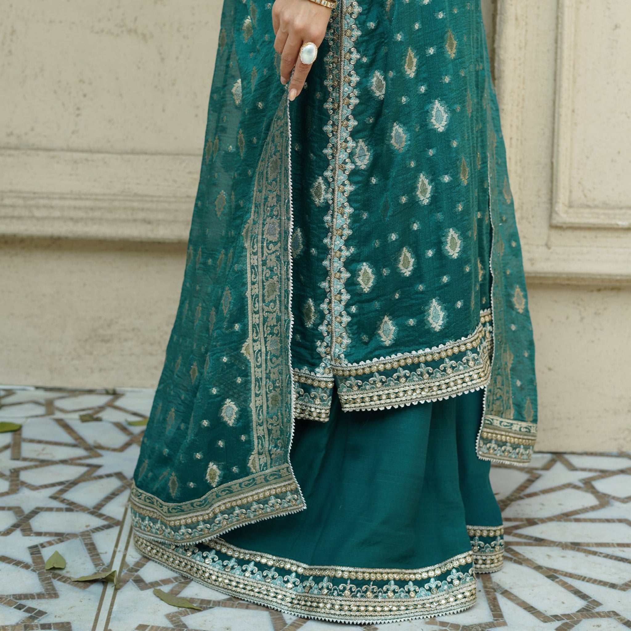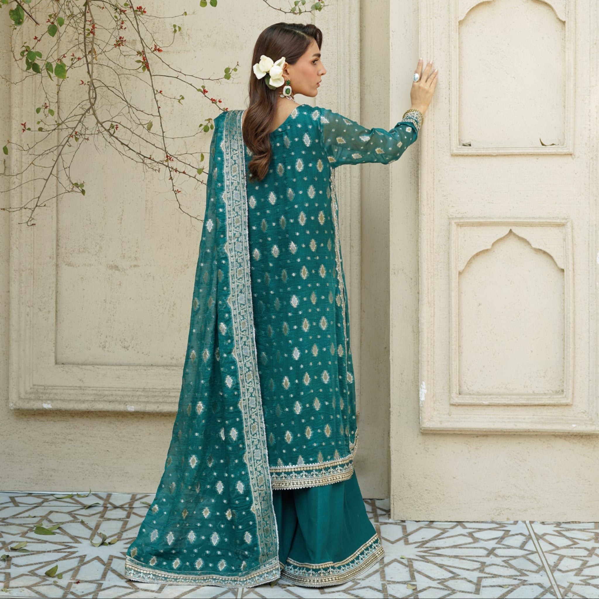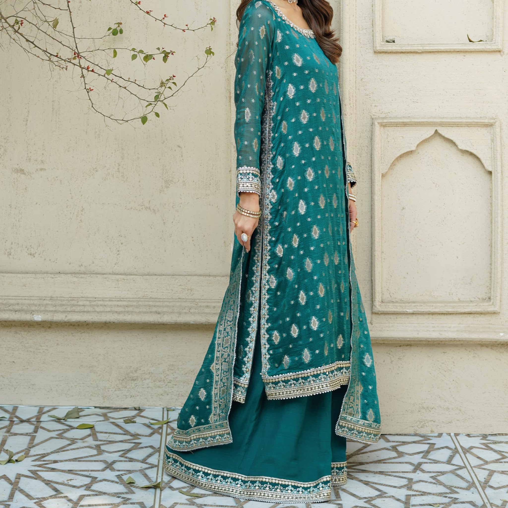 - Kurta and Dupatta Fabric: Chiffon Jamawar